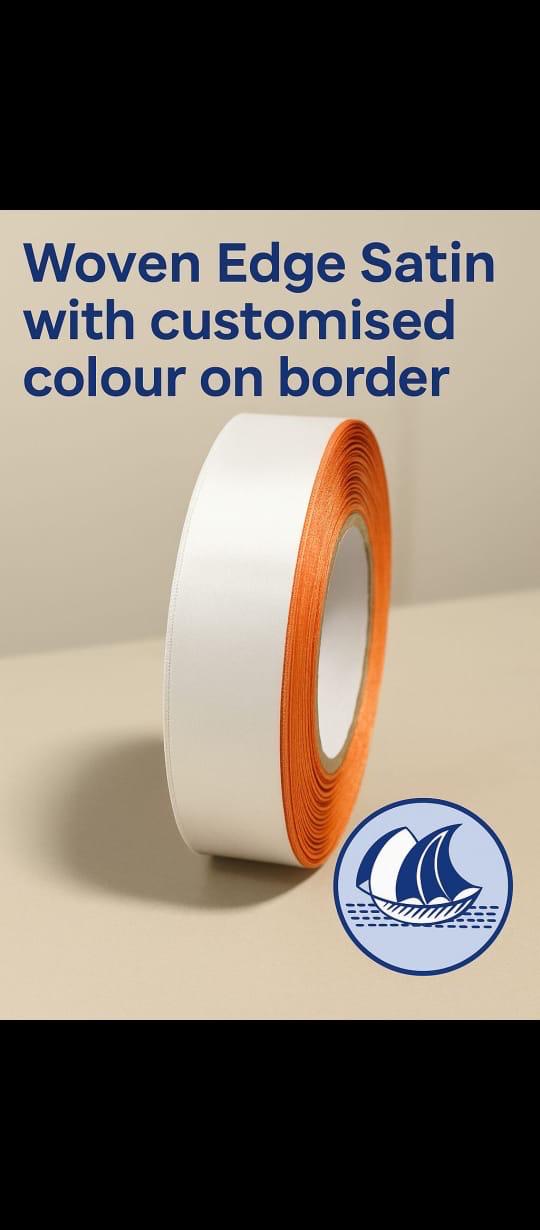Woven Edge Sati with Orange Border is a premium satin label tape designed for high-end garment branding and product identification. Manufactured using fine-quality polyester satin yarns, this tape features smooth, glossy satin texture with neatly woven edges and a contrasting orange border that enhances visual appeal and brand recognition.